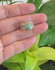 Crafted in a vintage-inspired design, this ring pays homage to the classics while adding a modern touch. The natural jadeite jade centerpiece, with its captivating hues, is embraced by intricate sterling silver detailing, accented by delicate gold plating. This ring is not just an accessory; it's a piece of history, a symbol of good luck, fortune and peace. Elevate your style with this unique treasure, perfect for both special occasions and everyday elegance.