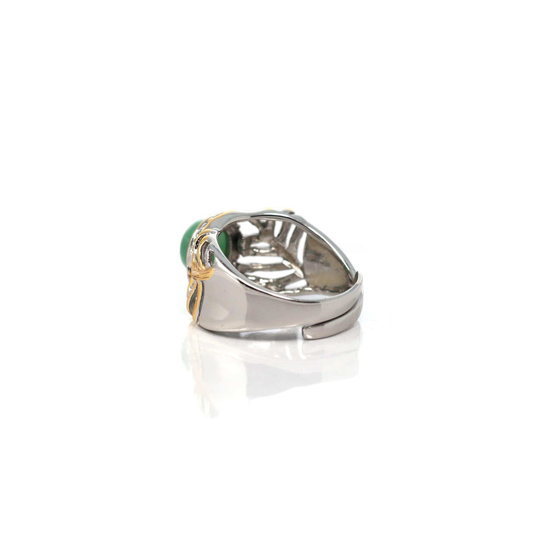 Baikalla Antique Natural Jadeite Jade Sterling Silver Gold Plated Two Tone Ring
