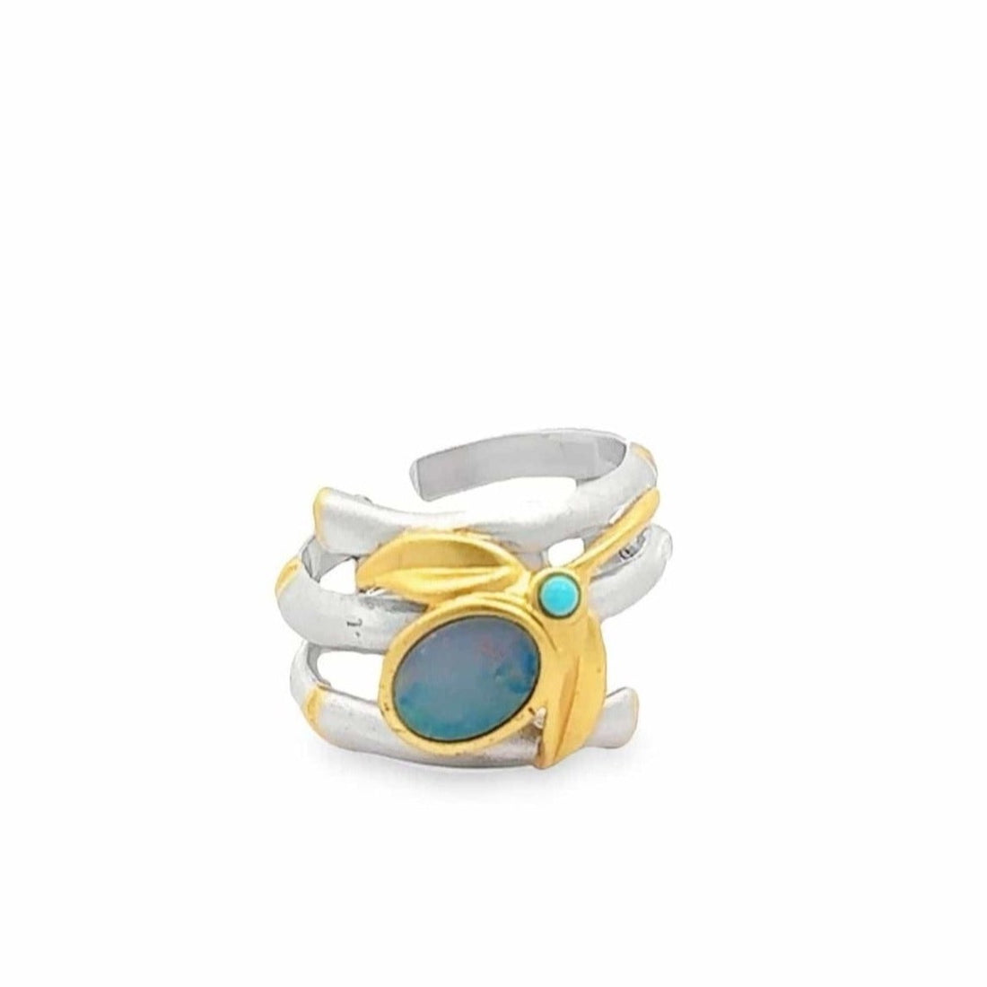 Baikalla Antique Natural Opal and Turquoise Sterling Silver Gold Plated Two Tone Ring