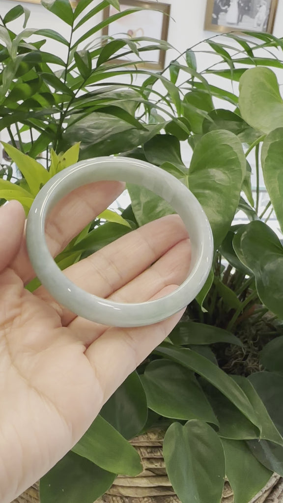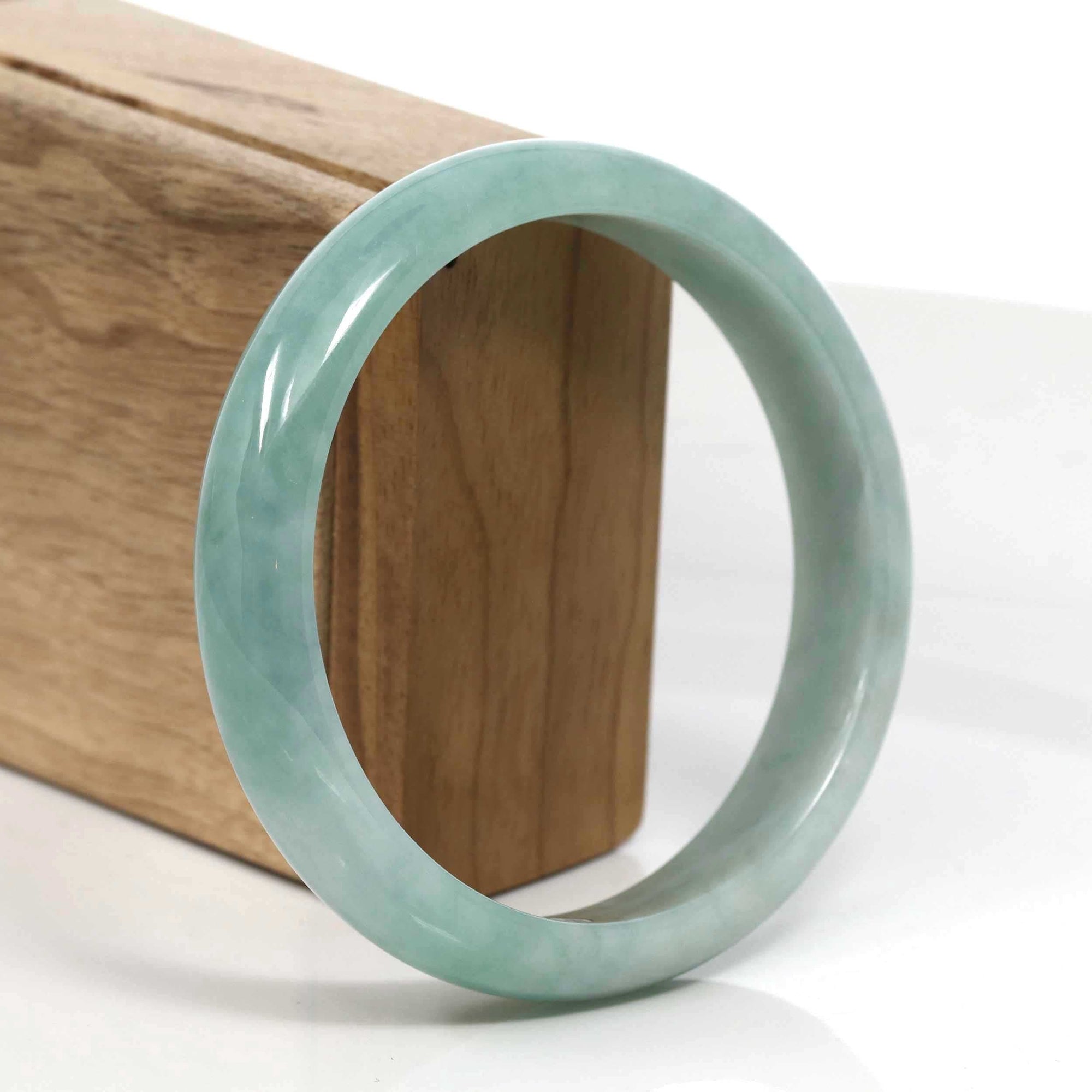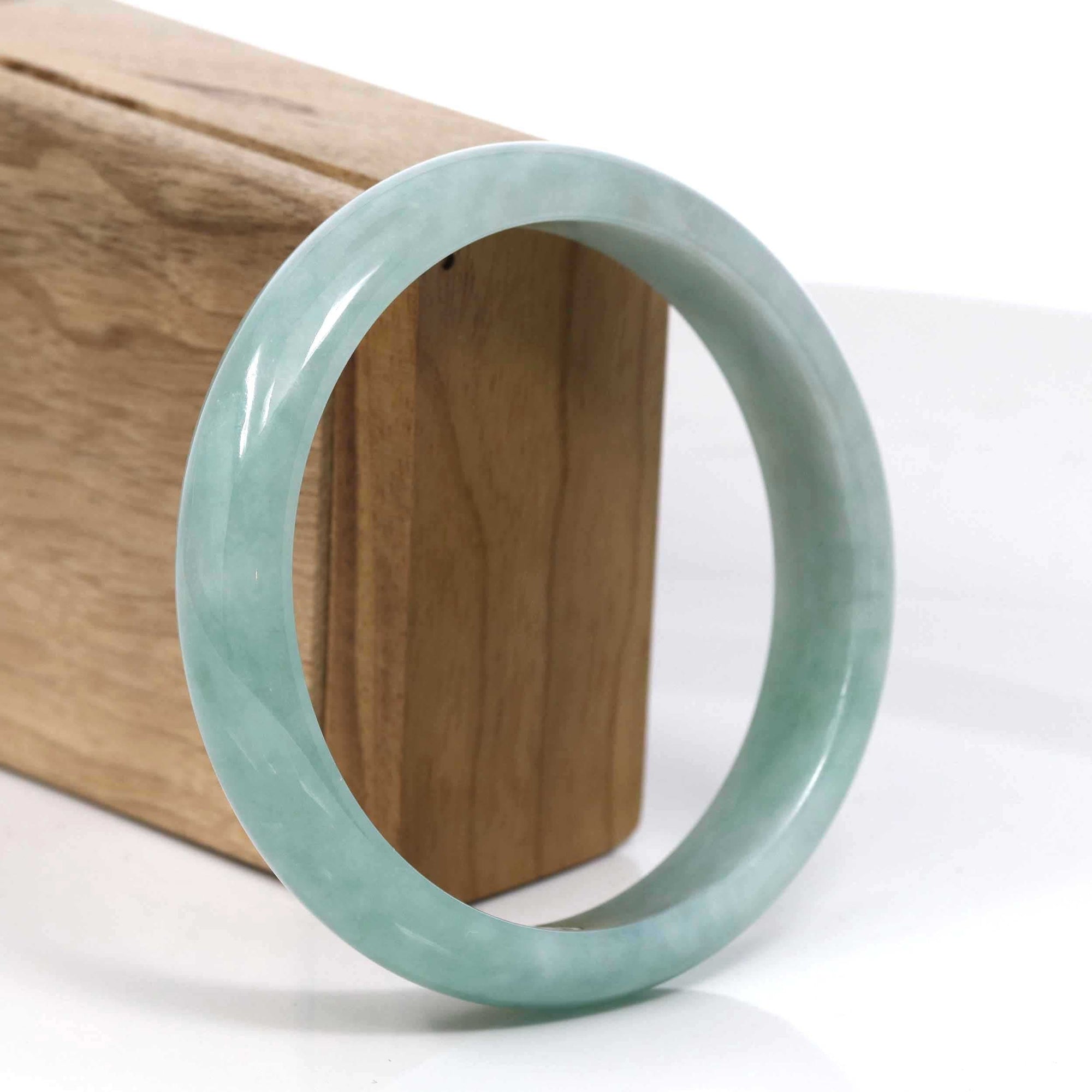 * DETAILS---This bangle is made with genuine Burmese old mine Jadeite jade, The jade texture is very smooth and translucent with green color. It's a very unique color bangle. You know the genuine jade bangle is always meaningful for someone. It's a Classic half round comfort style bracelet. It's a special gift for yourself or your love.