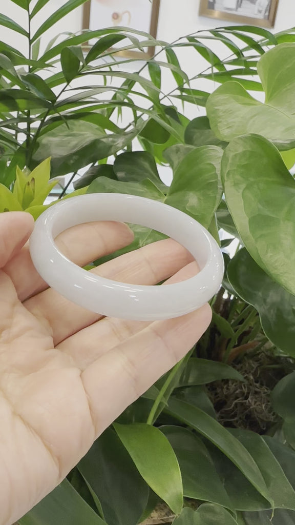 * DETAILS---This bangle is made with high-quality genuine Burmese ice jadeite jade. The jade texture is so smooth and translucent.  It's a heavy bangle. The Classic half-round comfort style bracelet. Jadeite jade is the toughest gemstone on the planet. People believe the real jade is a lucky gemstone. It's a special gift for you and your love.