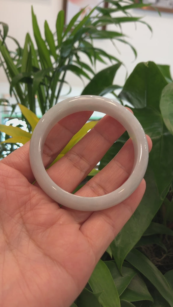 * DETAILS----This bangle is made with genuine Burmese  jadeite jade. The jade texture is so smooth. Just has a little clouds inside with a little blue-green. The Classic half-round comfort style bracelet. Jadeite jade is the toughest gemstone on the planet. People believe the real jade is a lucky gemstone. It's a special gift for you and your love.