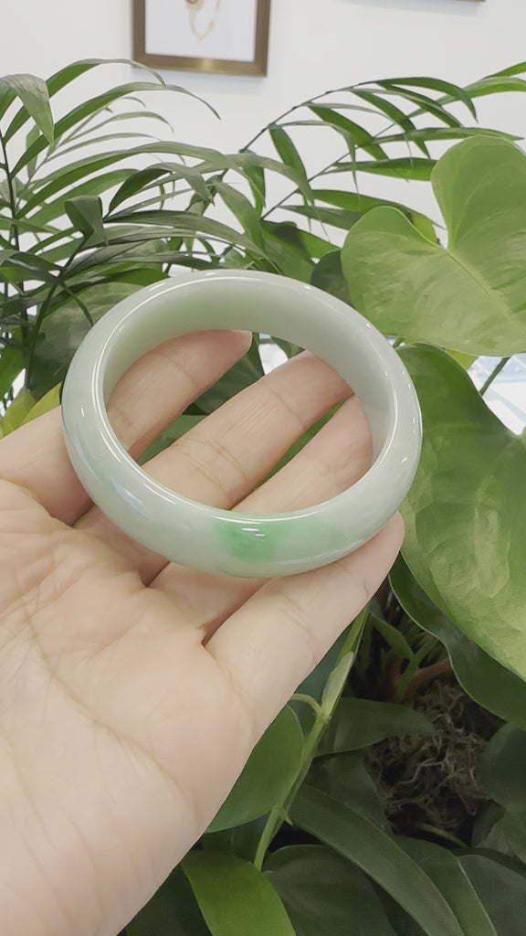 * DETAILS--- This bangle is made with very high-quality genuine Burmese Jadeite jade. The jade texture is fine and smooth with apple green color. It looks so beautiful in a wider size. It's a luxury gift for you and your love. It's a collectible item.