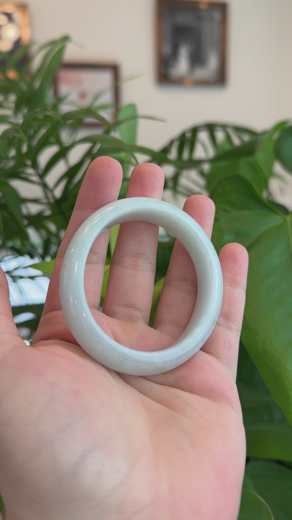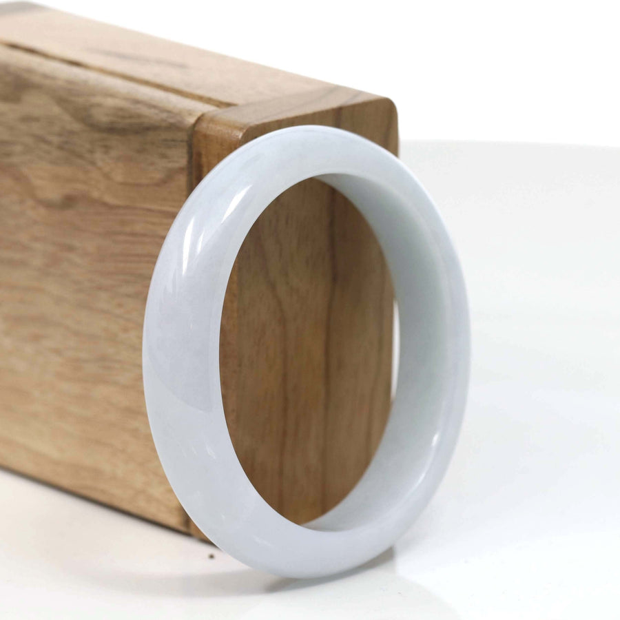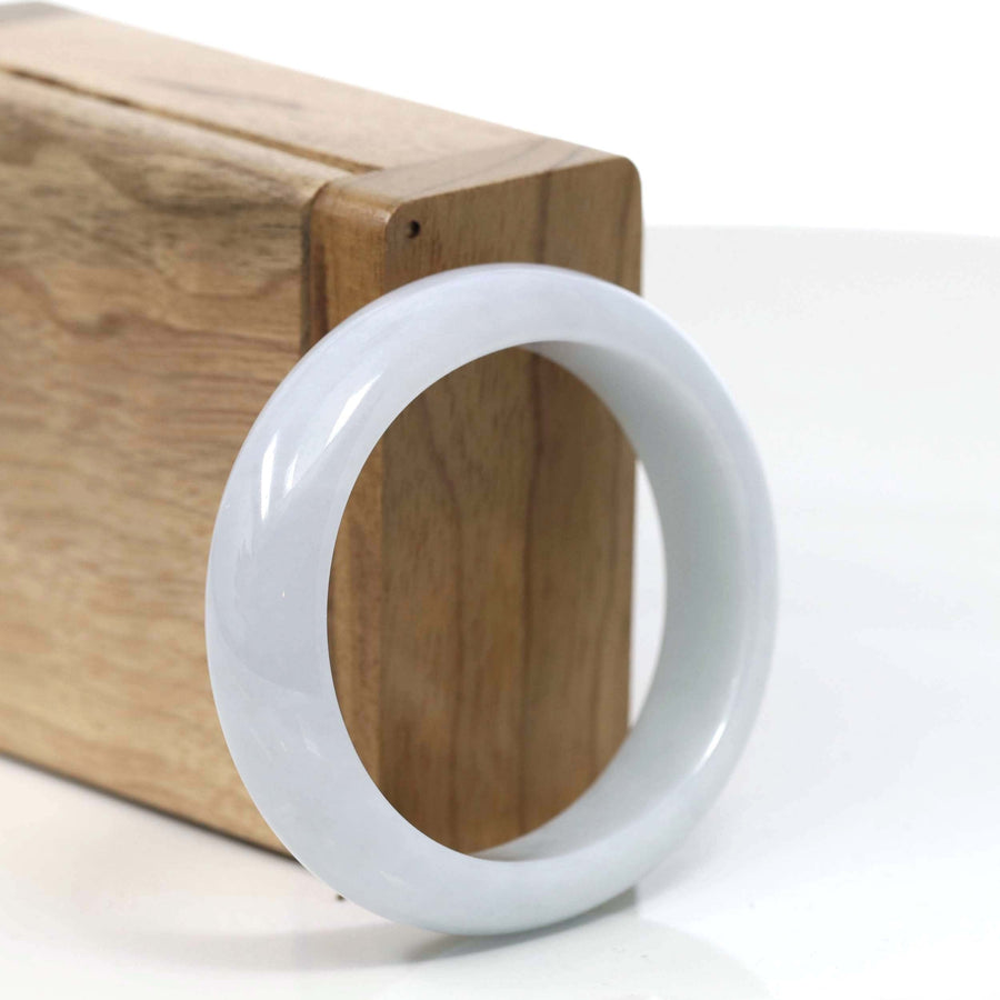 * DETAILS--- This bangle is made with fine genuine lavender Burmese Jadeite jade. The jade texture is so smooth and light lavender color. Looks very clear and perfect without any flaws. The Classic half-round comfort and oval style bracelet. Jadeite jade is the toughest gemstone on the planet. People believe the real jade is a lucky gemstone. It's a special gift for you and your love.