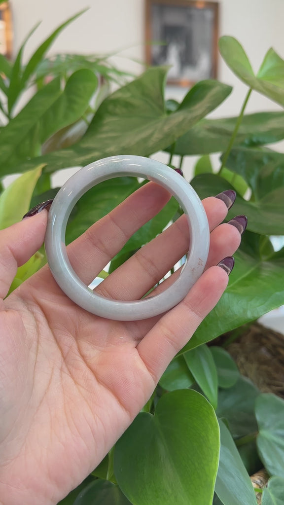 * DETAILS---This Bangle featuring lavender Natural Burmese Jadeite Jade, The texture is very smooth with lavender color, just has a little bit clouds line and red spots. This classic half-round style is amplified by the stunning white color with a blue undertone. Each Baikalla Classic Bangle is a unique masterpiece, as the natural variations in the Jadeite Jade create distinctive patterns and shades within the stone. It's a unique gift for you and your love.