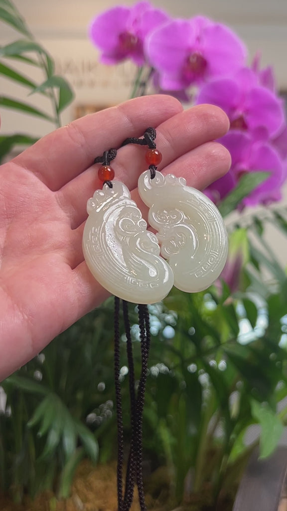 Baikalla "Dragon & Phoenix" Light Green Nephrite Jade Pendant Necklaces