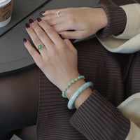* INTRODUCTION--- This gorgeous light green jadeite bracelet should be a staple in anyone's jewelry box. This bracelet is made with strong stainless steel cable to ensure durability. This bracelet is also made with high-quality genuine green jadeite jade beads and 18k yellow gold beads . The jade bead's texture is so smooth and translucent. The gold rich and matching colors are what sets this bracelet apart. The high classic round beads bracelet looks completely beautiful and exquisite. It's a perfect gift for yourself or your love. Sent at random.