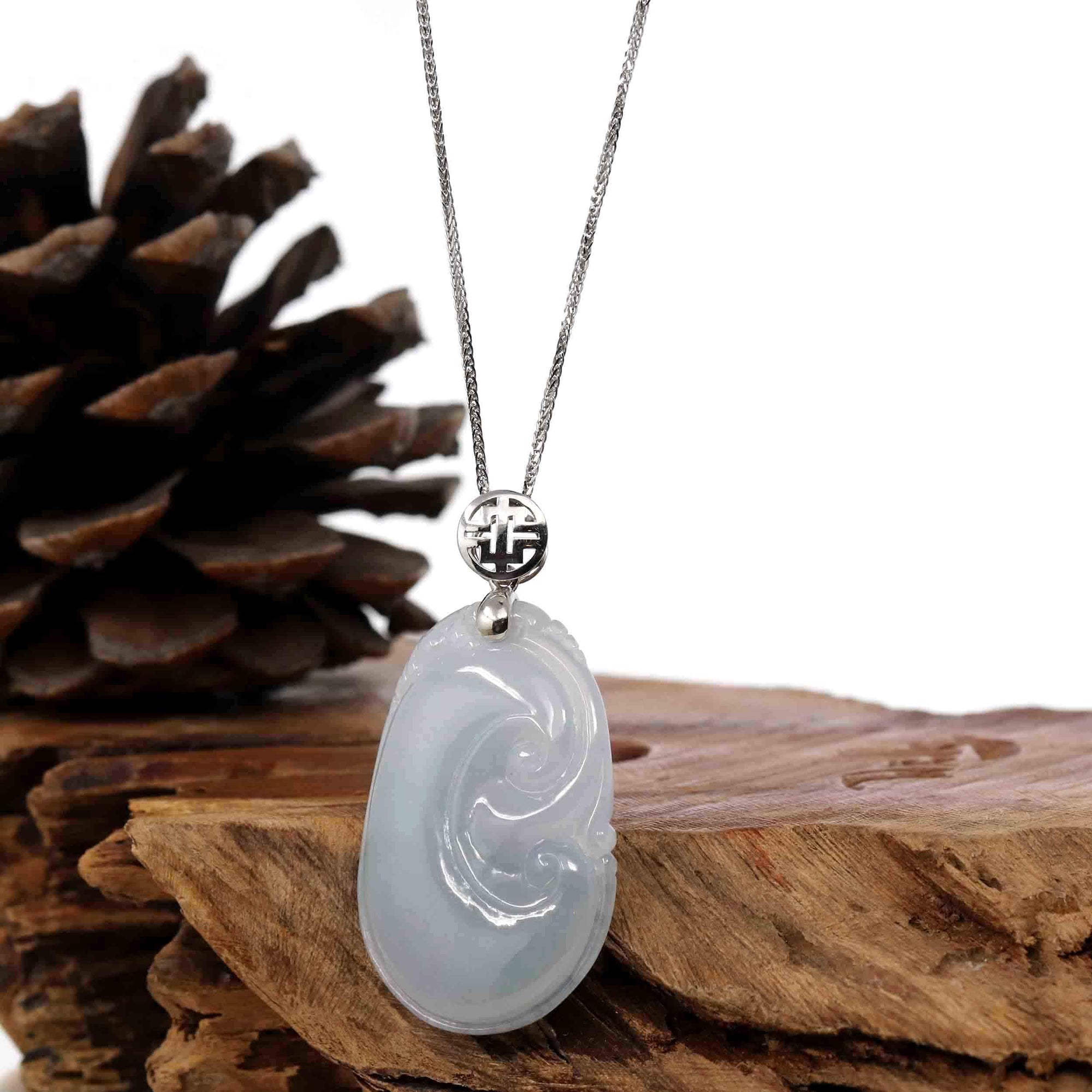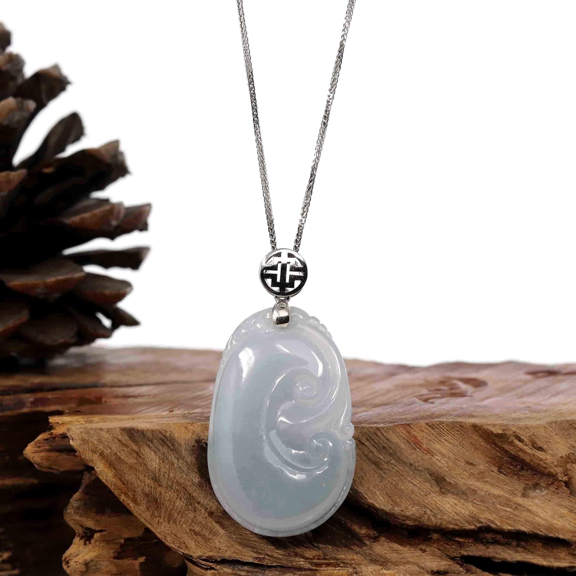 *Design concept-- "Ruyi" in Chinese literally means, "as you wish." This necklace portrays the timeless, good luck symbol in natural jadeite jade. This piece is one of a kind and you will not find another like it. It's worn as a good luck charm. Perfect for a gift for a friend who is venturing into a new chapter of life or a someone who is venturing into a new business.
