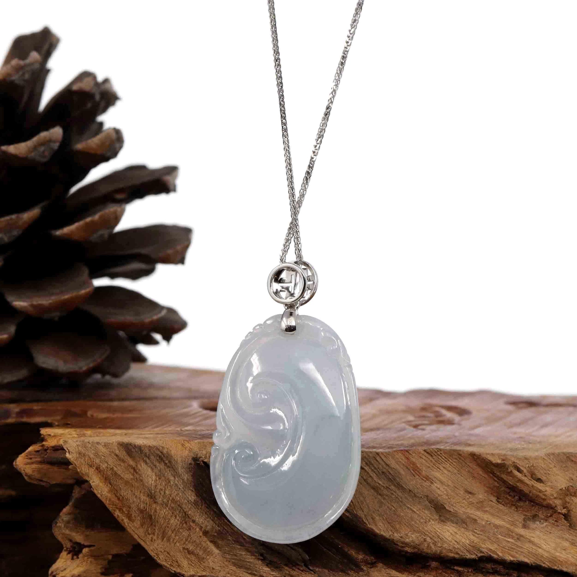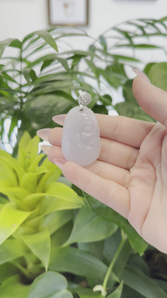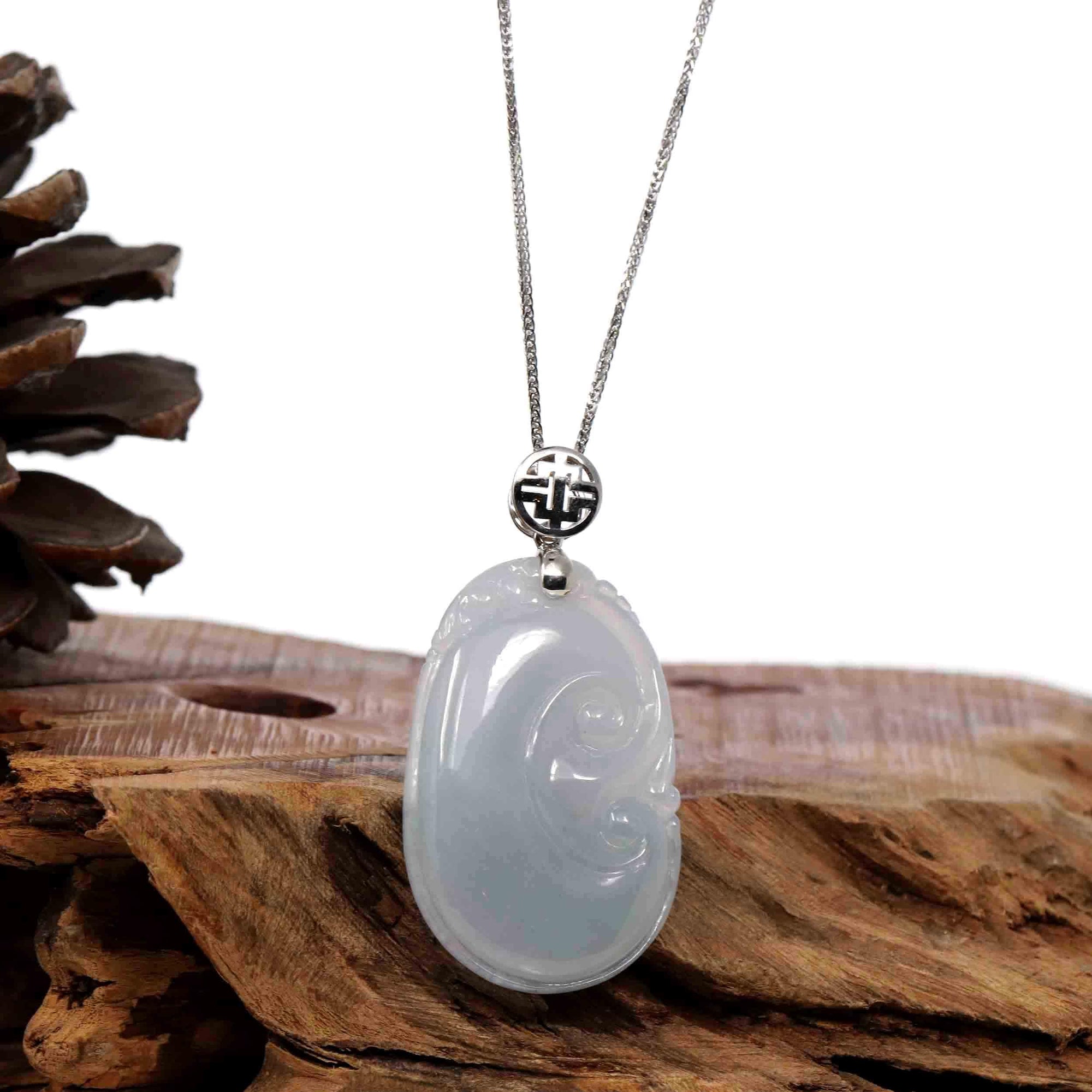Baikalla Jewelry Jade Guanyin Pendant Necklace Copy of Copy of Copy of Genuine Lavender Jadeite Jade RuYi Pendant Necklace With 14K Yellow Gold Bail