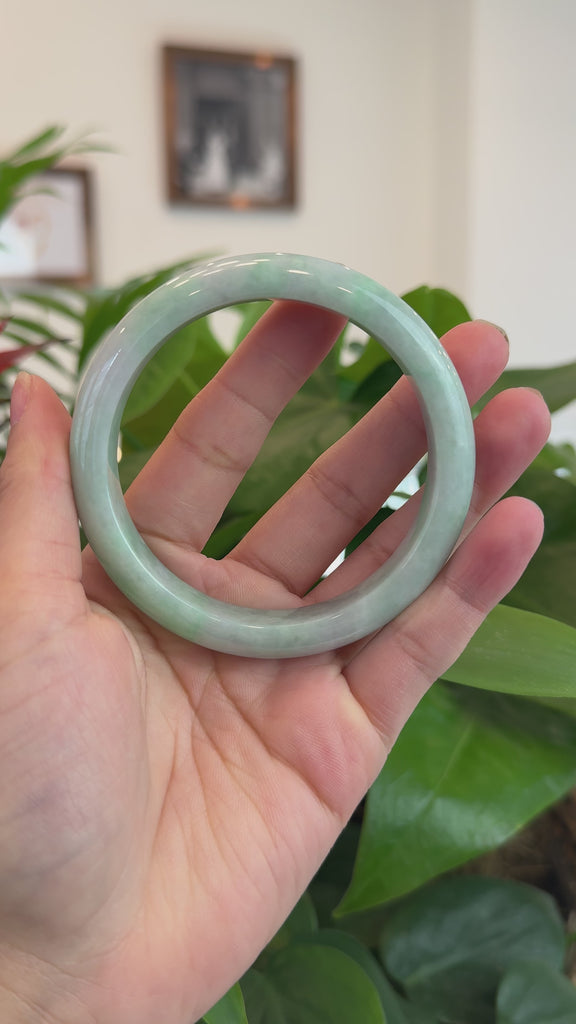 * DETAILS--- Genuine Burmese Jadeite Jade Bangle Bracelet. This bangle is made with genuine Burmese Green Lavender Jadeite jade. The texture is very smooth and translucent, just has a little cloudy spots , The colors look very nice. The Classic half-round style bracelet is comfortable. It's very luxurious with quality. It's a special gift for yourself or your love.