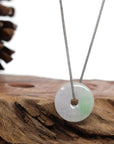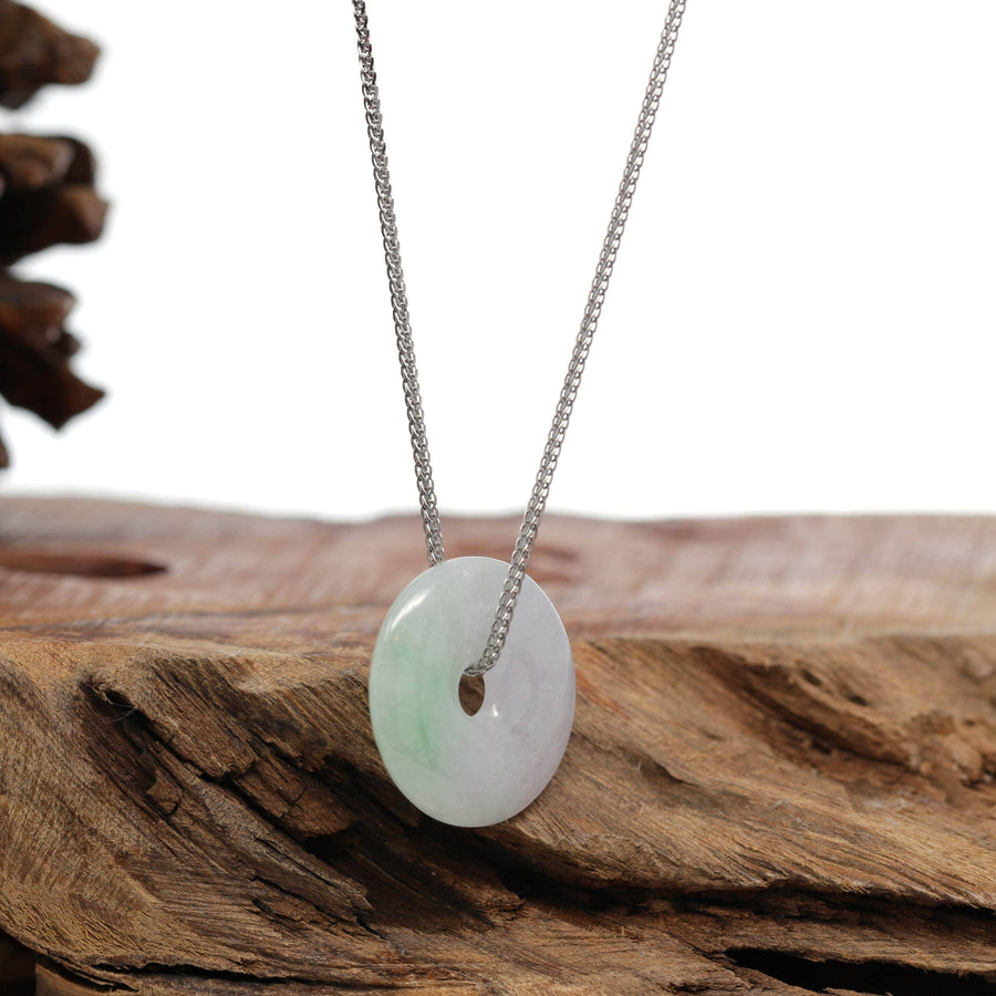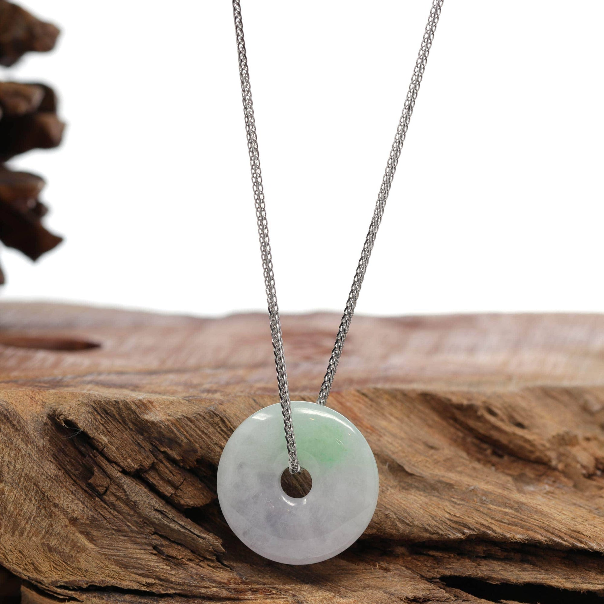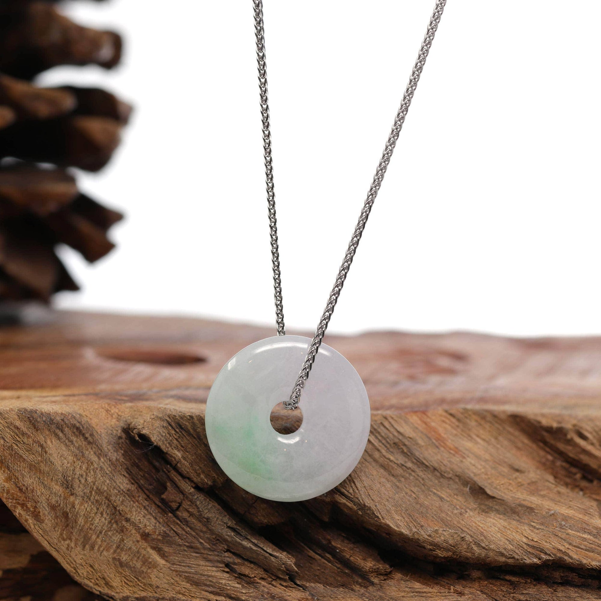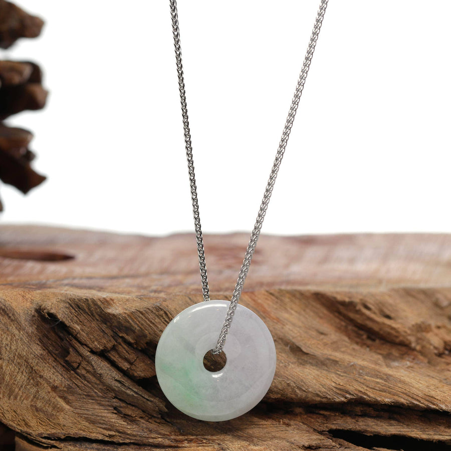 Design Concept--- The simple shape of a circle represents things such as happiness, wholeness, and prosperity. Also known as the "Circle of Heaven". This necklace is made with very high-quality genuine lavender jadeite jade from Burma. Which produces some of the finest in the world. Refined, exquisite. Very very slightly included. Gifting one of these is like wishing the best luck upon your family or loved ones. It's a perfect gift. ( Similar Items sent random. )