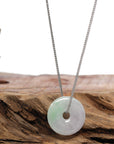 Baikalla "Good Luck Button" Necklace Green and Lavender Jadeite Jade Lucky Ping An Kou Necklace
