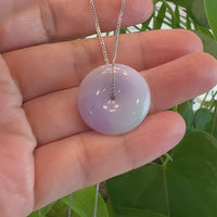 Design Concept--- The simple shape of a circle represents things such as happiness, wholeness, and prosperity. Also known as the "Circle of Heaven". This necklace is made with very high-quality genuine lavender jadeite jade from Burma. Which produces some of the finest in the world. Refined, exquisite. Very very slightly included. Gifting one of these is like wishing the best luck upon your family or loved ones. It's a perfect gift.  ( Similar items sent at random. )