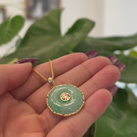 Baikalla "Good Luck Button" Necklace Green Jadeite Jade Lucky KouKou Pendant Necklace