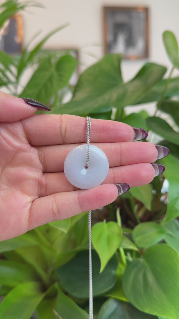 Baikalla "Good Luck Button" Necklace Green Lavender Jadeite Jade Lucky Ping An Kou Pendant
