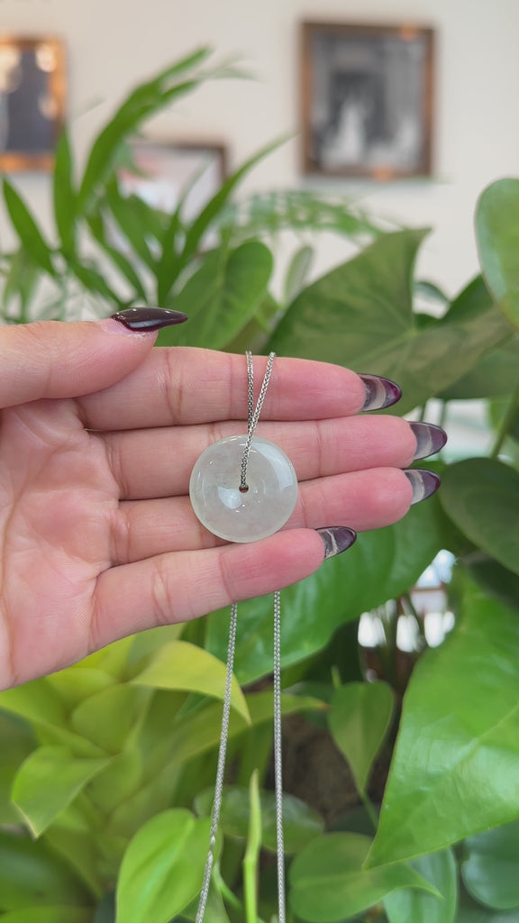 Baikalla "Good Luck Button" Necklace Ice Blue-Green Jadeite Jade Lucky Ping An Kou Pendant