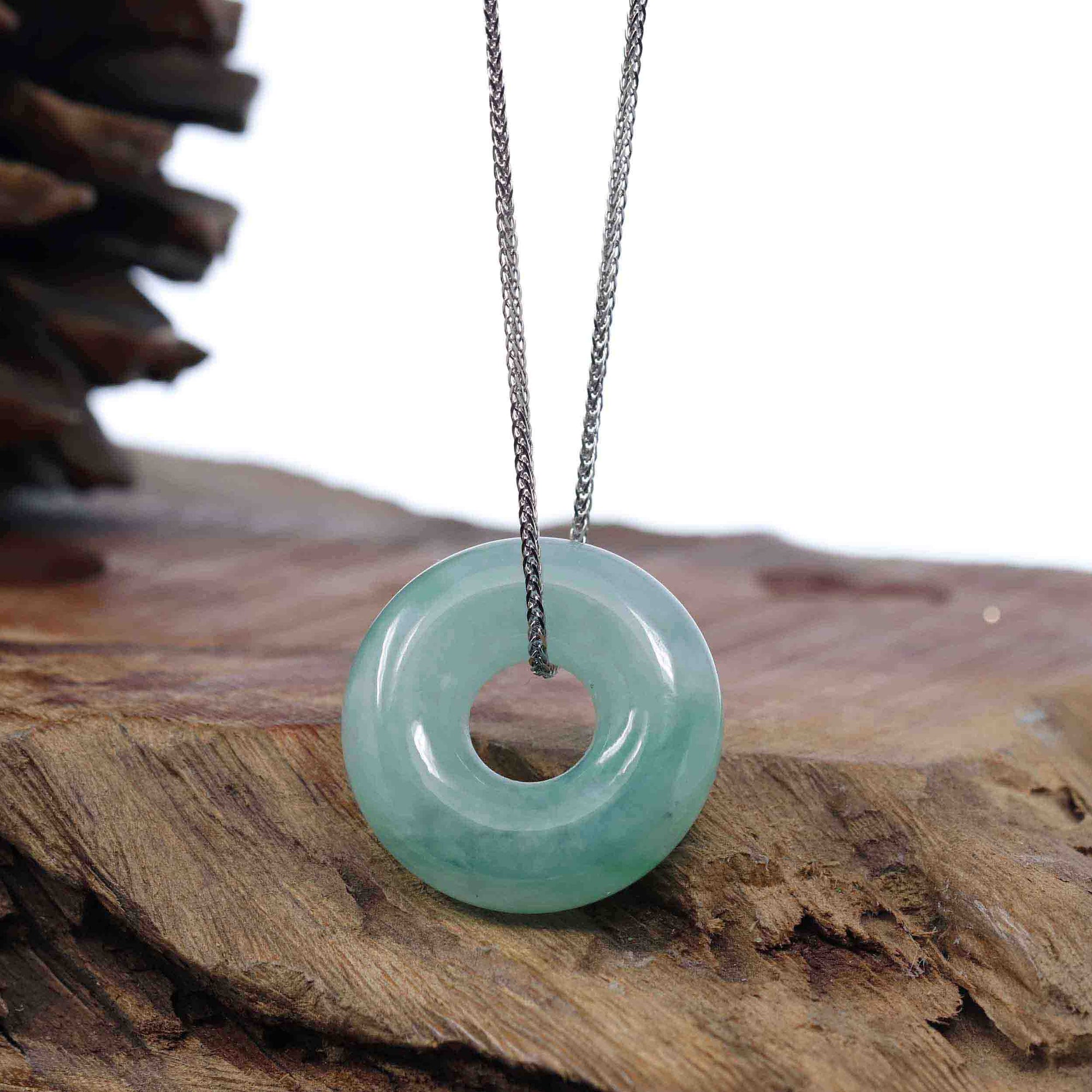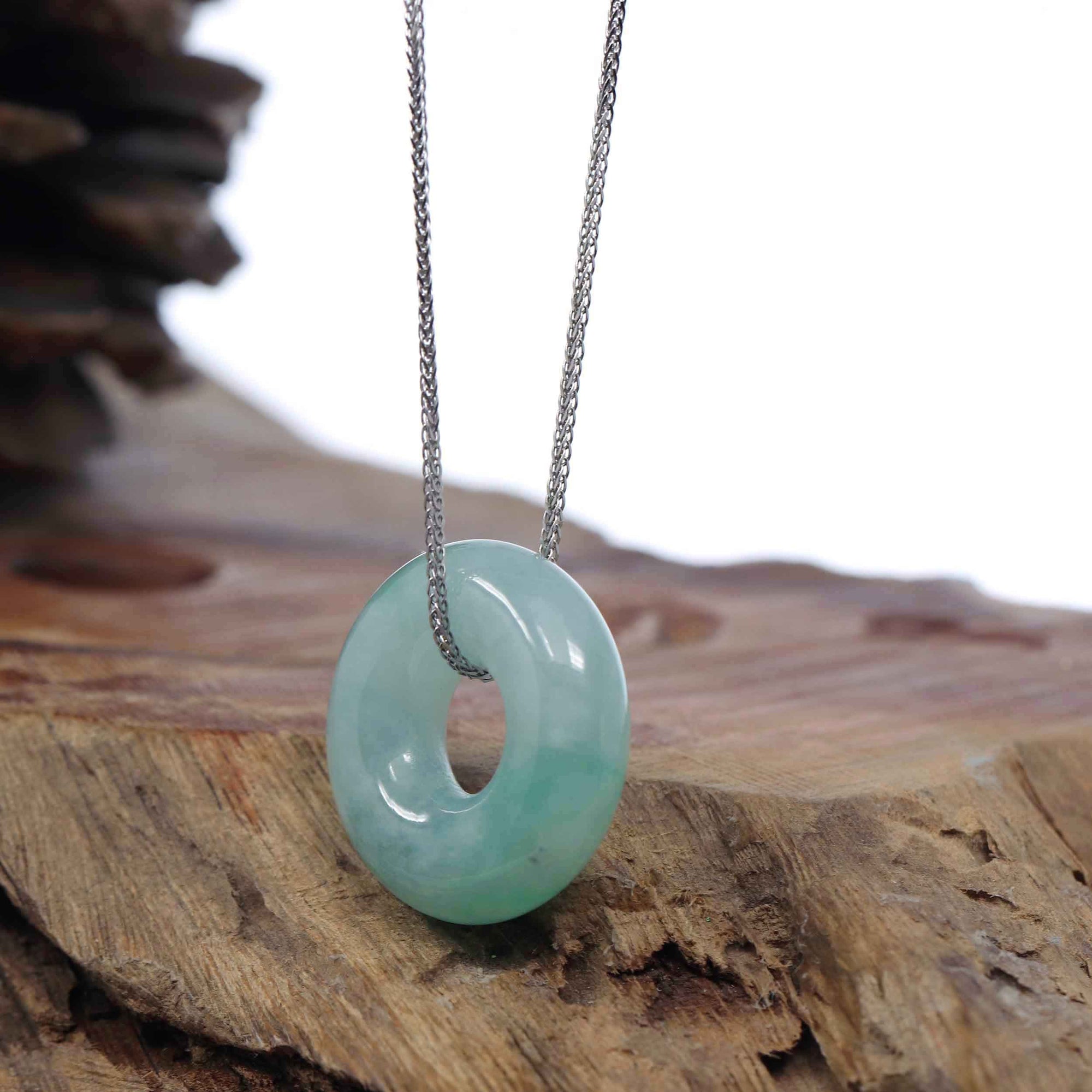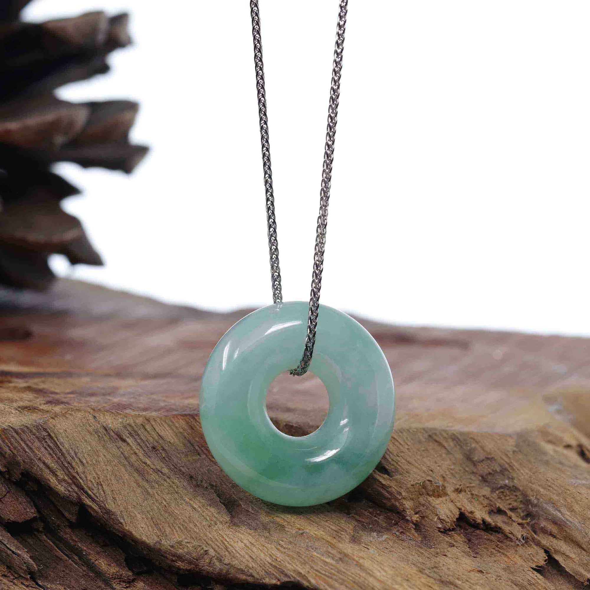 * Design Concept--- The simple shape of a circle represents things such as happiness, wholeness, and prosperity. Or as Sotheby's auction house called a jade bangle. "Circle of Heaven". This necklace is made with very high-quality genuine Burmese ice - blue jadeite jade. Which produces some fine jade. The texture is very old from the old mine. the ice-blue color is good with a little lavender color. Gifting one of these is like wishing the best of luck to your family or loved ones. It's a perfect gift for Men.