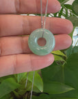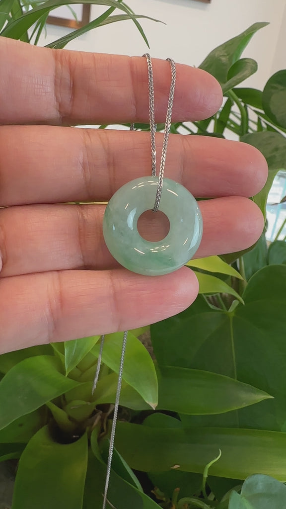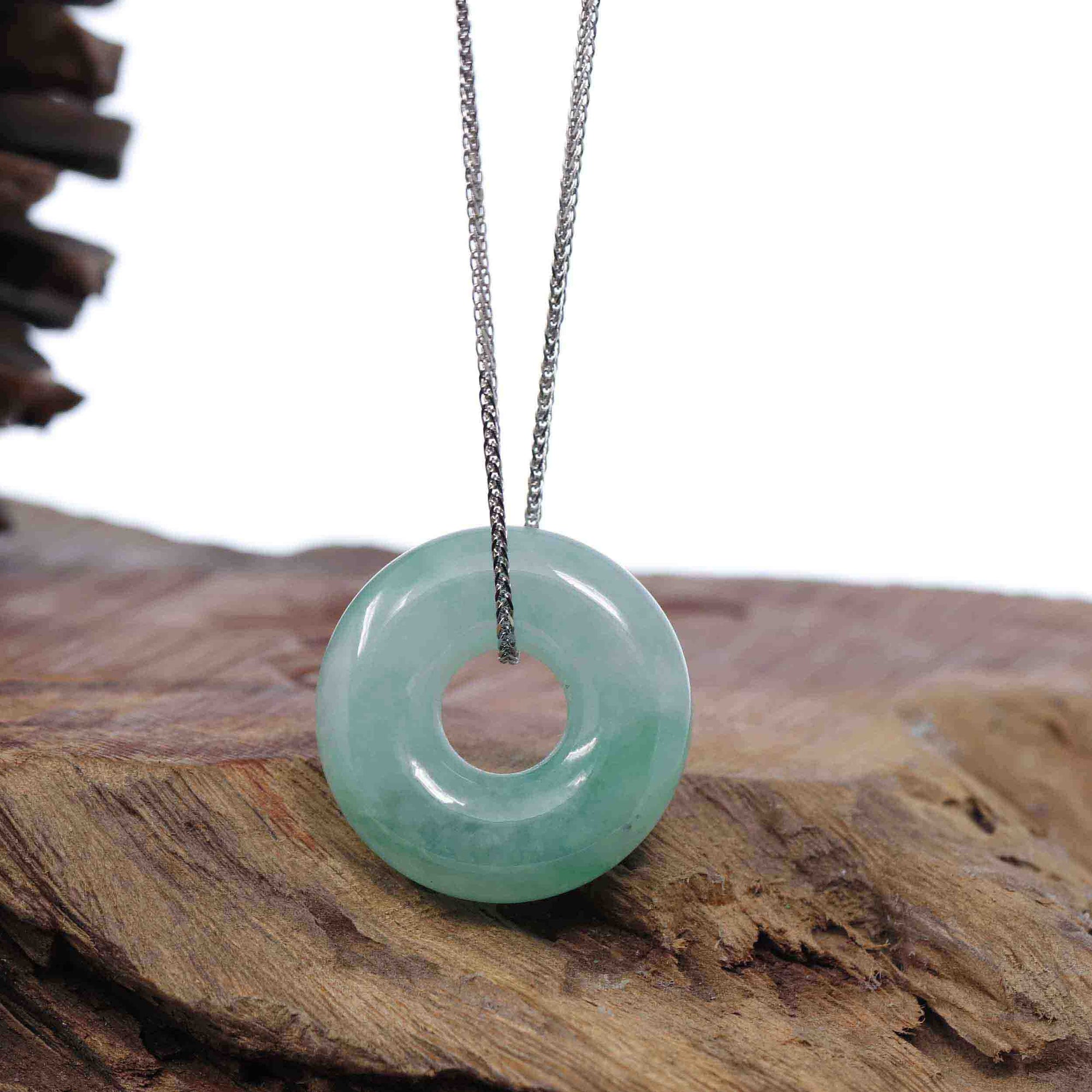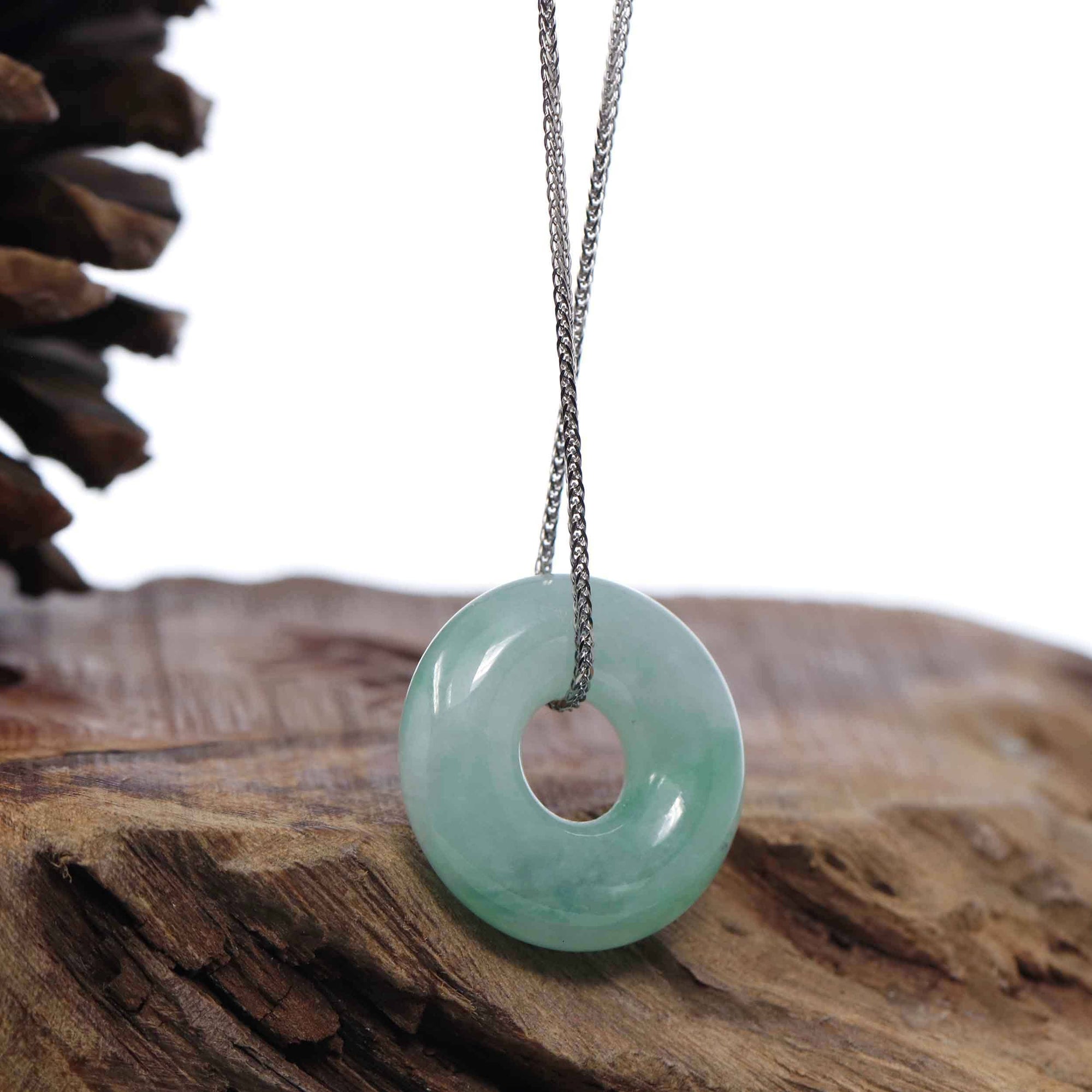 * Design Concept--- The simple shape of a circle represents things such as happiness, wholeness, and prosperity. Or as Sotheby's auction house called a jade bangle. "Circle of Heaven". This necklace is made with very high-quality genuine Burmese ice - blue jadeite jade. Which produces some fine jade. The texture is very old from the old mine. the ice-blue color is good with a little lavender color. Gifting one of these is like wishing the best of luck to your family or loved ones. It's a perfect gift for Men.