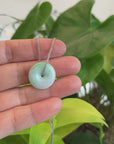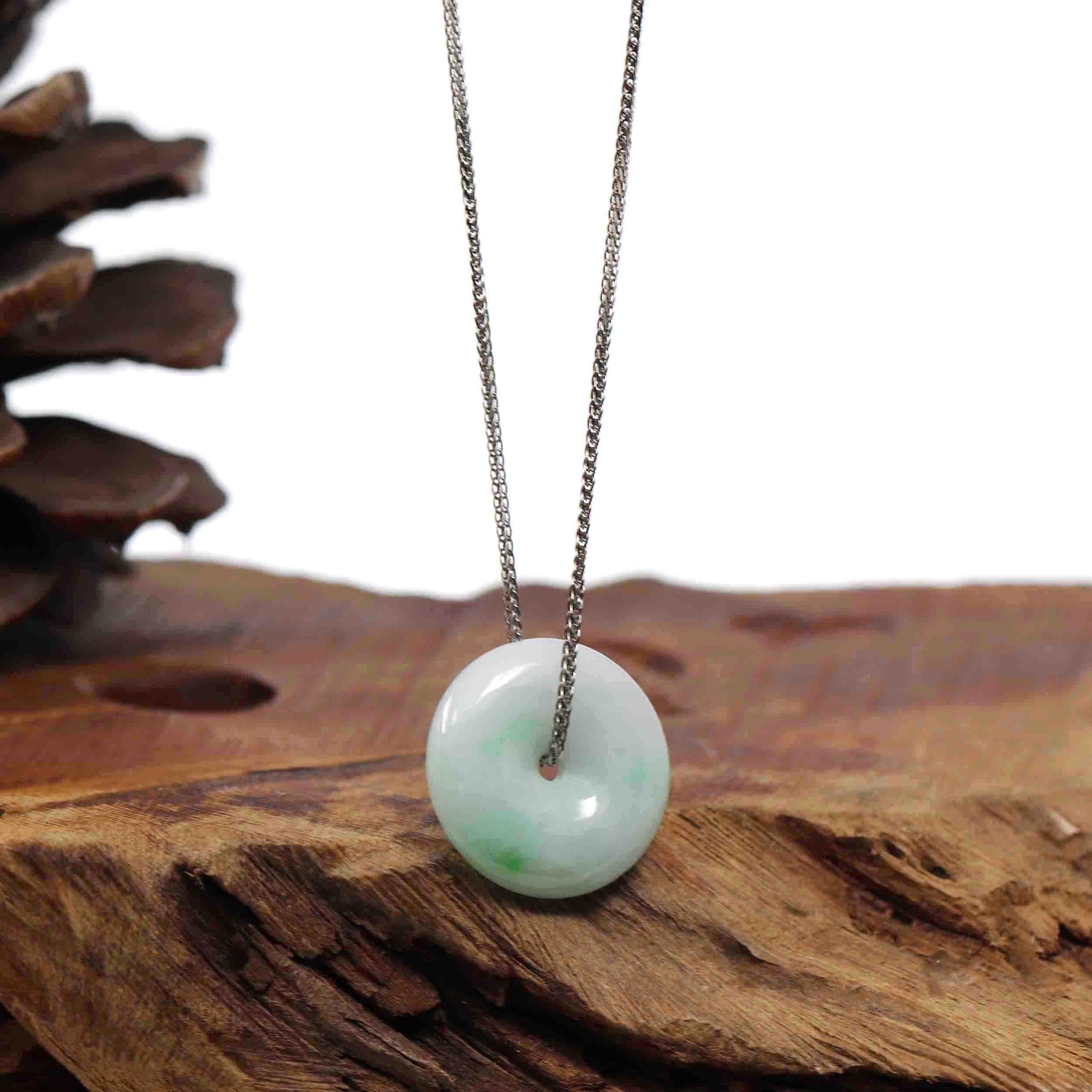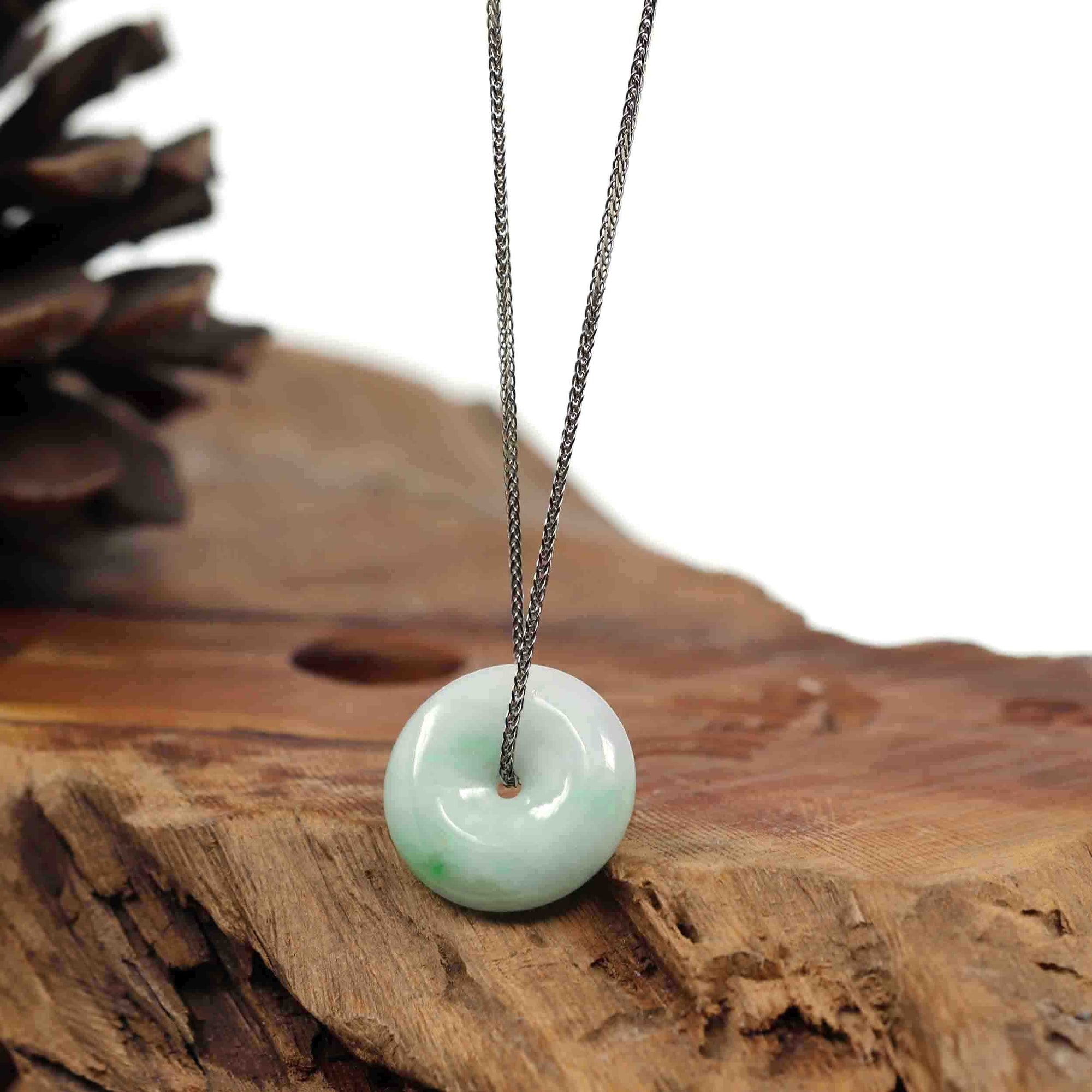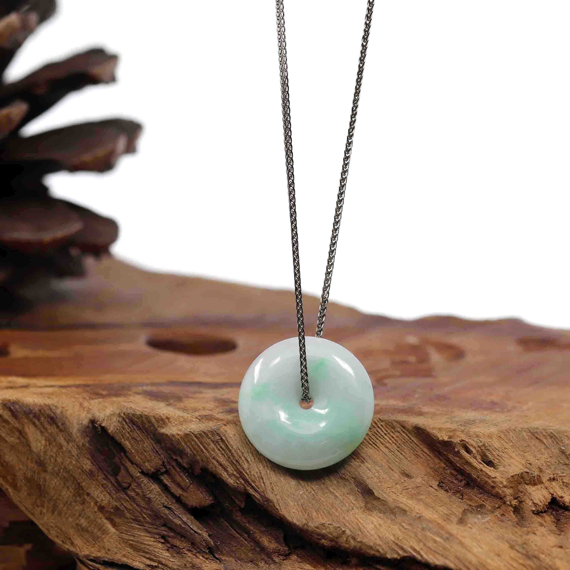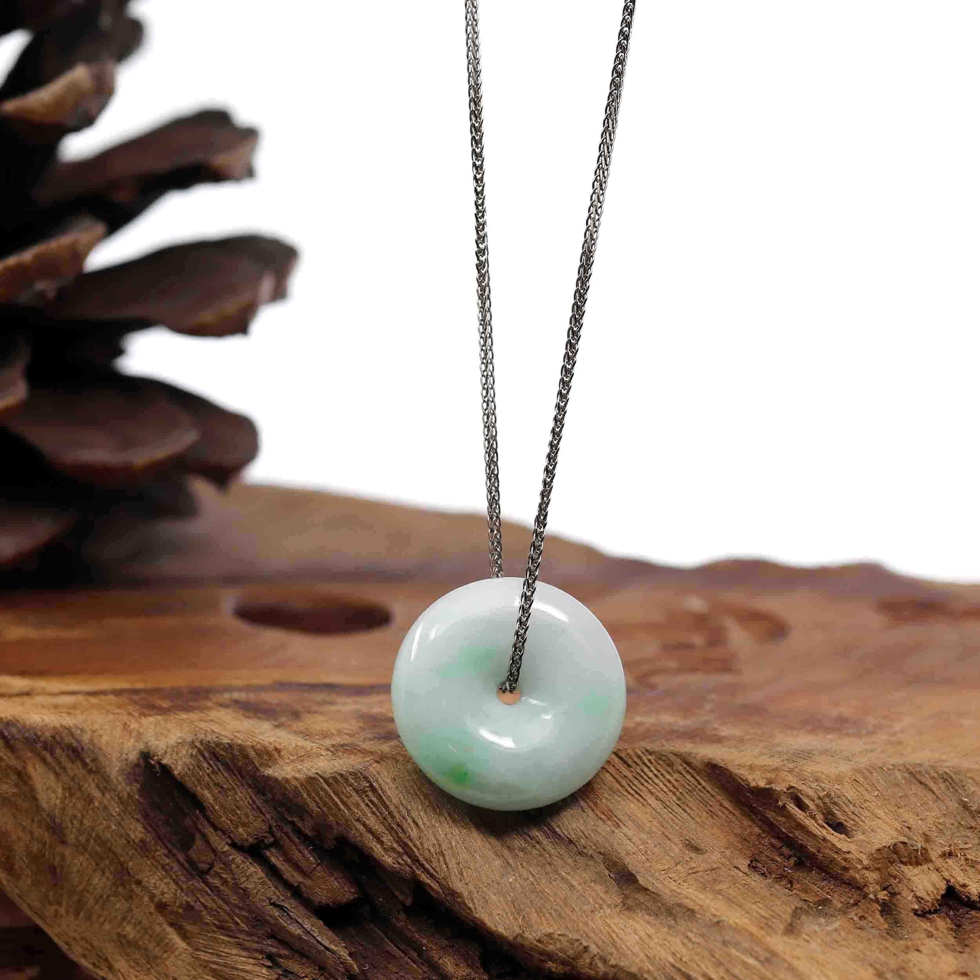 * Design Concept--- The simple shape of a circle represents things such as happiness, wholeness, and prosperity. Or as Sotheby's auction house called a jade bangle. "Circle of Heaven". This necklace is made with very high-quality genuine Burmese ice green jadeite jade. Which produces some fine jade. The texture is very old from the old mine. Gifting one of these is like wishing the best of luck to your family or loved ones. ( Similar items sent at random. )