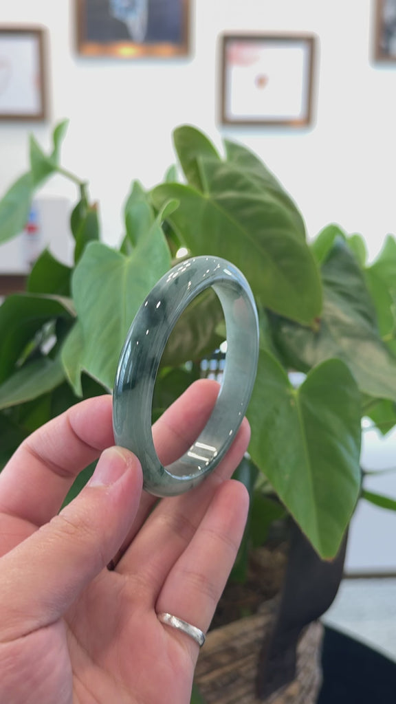 * DETAILS--- Genuine Burmese Jadeite Jade Bangle Bracelet. This bangle is made with high-quality genuine Burmese Ice blue-green Jadeite jade, The jade texture is so smooth and translucent. The Classic half-round style bangle looks completely beautiful with blue-green. It is a larger size bangle. It's a very unique bangle for yourself or your love.