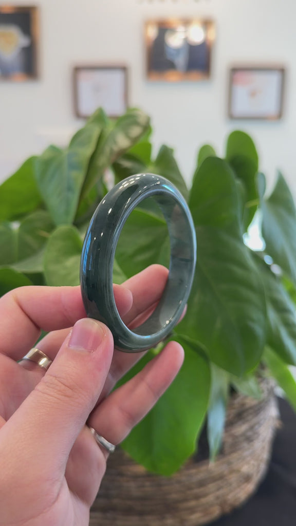 Baikalla "Half Round" Deeper Green Jadeite Jade Bangle Bracelet (60 mm) #T460