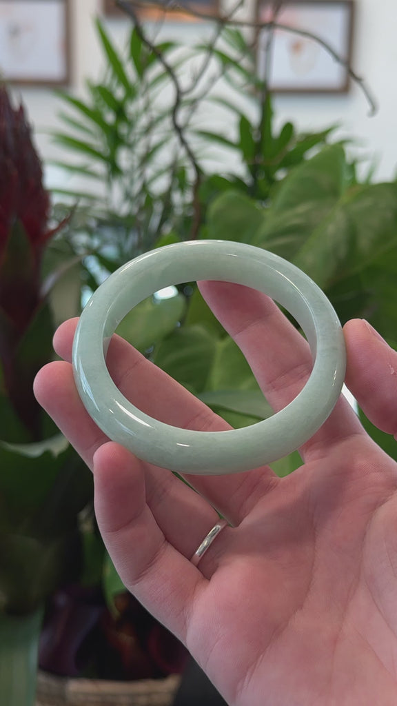 * DETAILS--- This exquisite bangle is crafted from premium Burmese Jadeite in a bright green hue. With its smooth, translucent texture and captivating color, it radiates a timeless elegance and cultural heritage. The classic half-round comfort design enhances the jade’s natural beauty with simplicity, making this bracelet a cherished addition to any jewelry collection. This bangle has such a stunning and even color throughout, making this piece a thoughtful gift for yourself or someone truly special.
