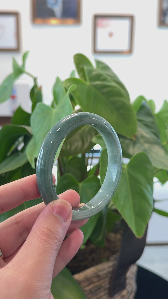* DETAILS--- Genuine Burmese Jadeite Jade Bangle Bracelet. This bangle is made with high-quality genuine Burmese Ice oil-green Jadeite jade, The jade texture is so smooth and translucent. The even icy blue-green color and fine texture makes this bangle so mesmerizing.The comfort half-round style bangle looks completely beautiful with blue-green and is so comfortable on the wrist. It's a very unique bangle for yourself or your love.
