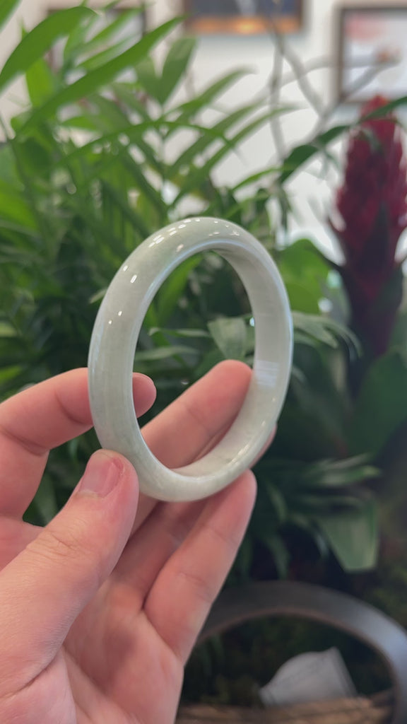 * DETAILS--- This exquisite bangle is crafted from premium Burmese  jadeite in a light green hue. With its smooth, translucent texture and captivating color, it radiates a timeless elegance and cultural heritage. The classic half-round comfort design enhances the jade’s natural beauty with simplicity, making this bracelet a cherished addition to any jewelry collection. just has some clouds and inclusion, Known to symbolize protection and strength, jade bangles hold deep meaning, making this piece a thoughtful, one-of-a-kind gift for yourself or someone truly special.