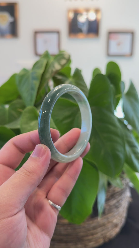 * DETAILS--- Genuine Burmese Jadeite Jade Bangle Bracelet. This bangle is made with high-quality genuine Burmese very light lavender and green Jadeite jade, The jade texture is smooth with small cloudy spots. The light green color and smooth texture, truly a mesmerizing combination. The Classic half-round style bangle looks completely beautiful with light lavender and green. Perfect for a very special gift for yourself or your loved one.