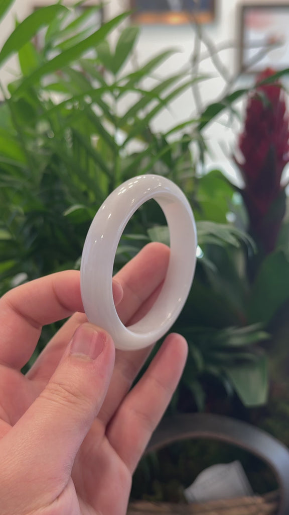* DETAILS--- This exquisite bangle is crafted from premium Burmese jadeite in a light lavender hue. With its smooth, translucent texture and captivating color, it radiates a timeless elegance and cultural heritage. The classic half-round comfort design enhances the jade’s natural beauty with simplicity, making this bracelet a cherished addition to any jewelry collection. just has some clouds and inclusion, Known to symbolize protection and strength, jade bangles hold deep meaning, making this piece a thoughtful, one-of-a-kind gift for yourself or someone truly special.