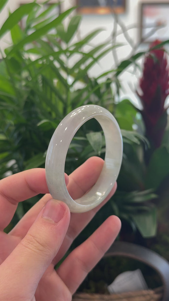 * DETAILS--- This exquisite bangle is crafted from premium Burmese jadeite in a light lavender hue. With its smooth, translucent texture and captivating color, it radiates a timeless elegance and cultural heritage. The classic half-round comfort design enhances the jade’s natural beauty with simplicity, making this bracelet a cherished addition to any jewelry collection. just has some clouds and inclusion, Known to symbolize protection and strength, jade bangles hold deep meaning, making this piece a thoughtful, one-of-a-kind gift for yourself or someone truly special.