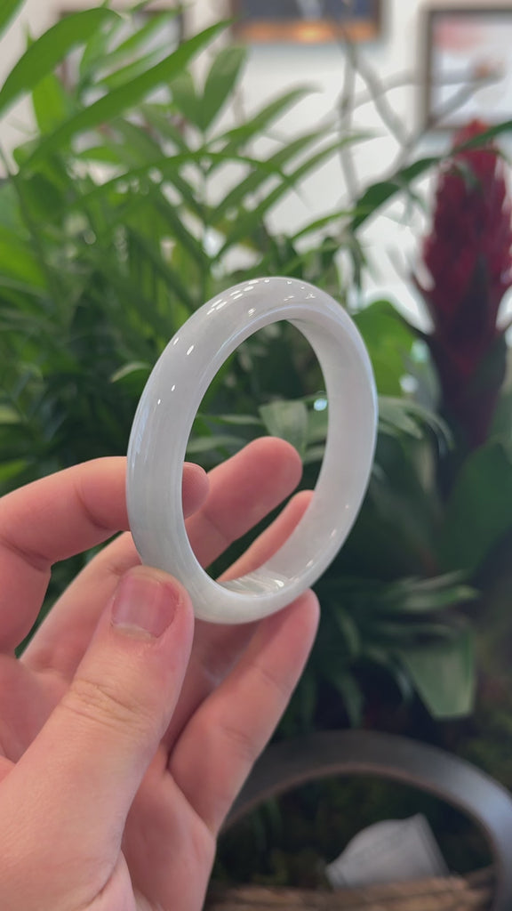 * DETAILS--- This exquisite bangle is crafted from premium Burmese  jadeite in a light lavender hue. With its smooth, translucent texture and captivating color, it radiates a timeless elegance and cultural heritage. The classic half-round comfort design enhances the jade’s natural beauty with simplicity, making this bracelet a cherished addition to any jewelry collection. just has some clouds and inclusion, Known to symbolize protection and strength, jade bangles hold deep meaning, making this piece a thoughtful, one-of-a-kind gift for yourself or someone truly special.