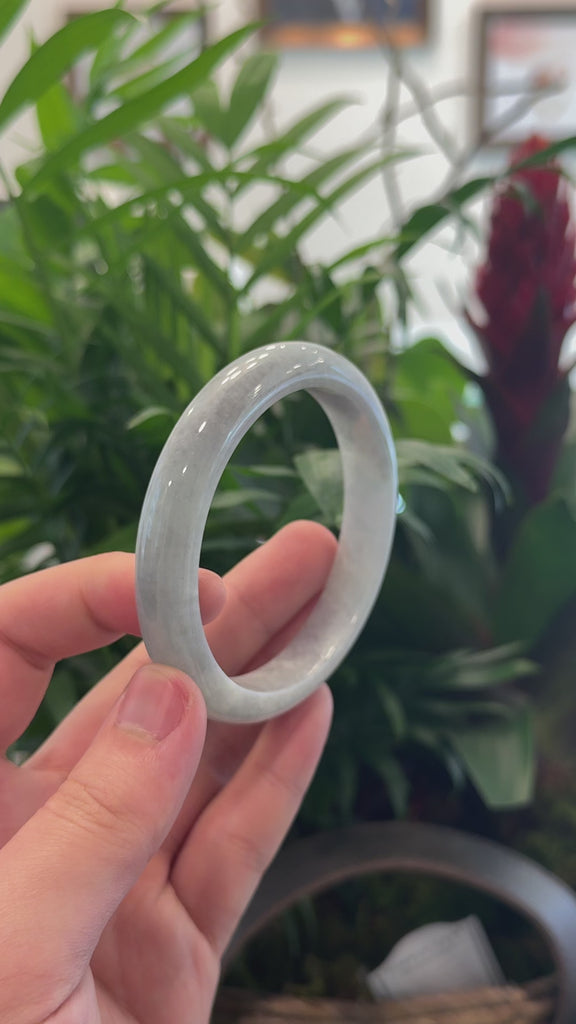 * DETAILS--- This exquisite bangle is crafted from premium Burmese jadeite in a light lavender hue. With its smooth, translucent texture and captivating color, it radiates a timeless elegance and cultural heritage. The classic half-round comfort design enhances the jade’s natural beauty with simplicity, making this bracelet a cherished addition to any jewelry collection. just has some clouds and inclusion, Known to symbolize protection and strength, jade bangles hold deep meaning, making this piece a thoughtful, one-of-a-kind gift for yourself or someone truly special.