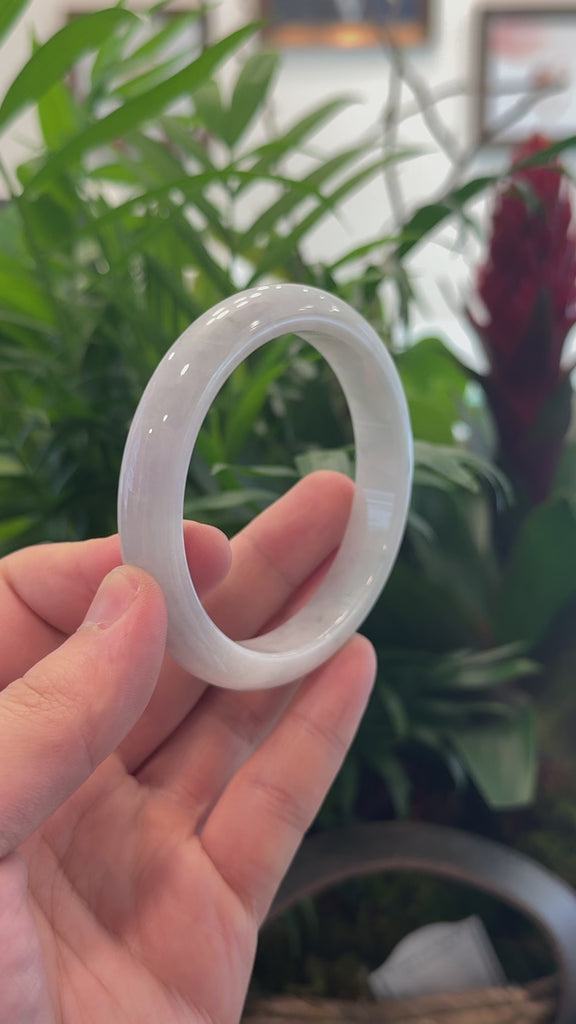 * DETAILS--- This exquisite bangle is crafted from premium Burmese jadeite in a light lavender hue. With its smooth, translucent texture and captivating color, it radiates a timeless elegance and cultural heritage. The classic half-round comfort design enhances the jade’s natural beauty with simplicity, making this bracelet a cherished addition to any jewelry collection. just has some clouds and inclusion, Known to symbolize protection and strength, jade bangles hold deep meaning, making this piece a thoughtful, one-of-a-kind gift for yourself or someone truly special.