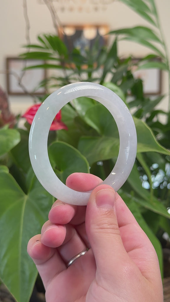 * DETAILS--- This stunning high-end bangle is expertly crafted from premium Burmese Jadeite, featuring a mesmerizing blend of radiant icy hues. Its smooth, ice-translucent texture and luminous clear-white tones embody timeless elegance and cultural significance. Designed with a classic half-round comfort fit, this bracelet enhances the jade’s natural serenity with effortless sophistication. A rare and meaningful collectible, it makes a thoughtful and unique gift for yourself or someone truly special.