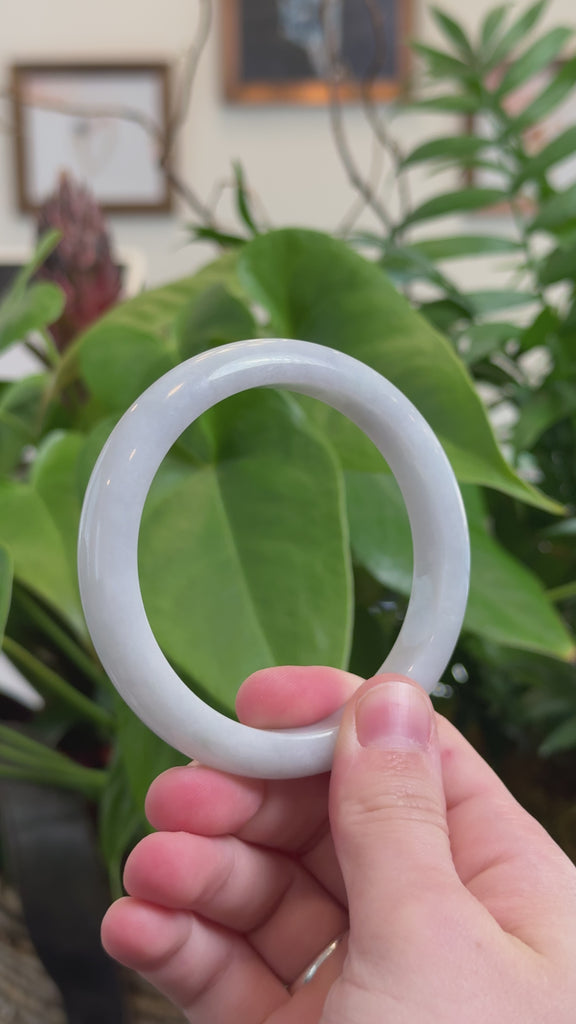 * DETAILS--This bangle is made from high-quality genuine Burmese Jadeite jade. It has a very smooth & translucent texture. The classic half-round design offers comfort and style. Jadeite jade is one of the toughest gemstones, and it's believed to bring good luck. This bangle makes a special gift for you or a loved one.