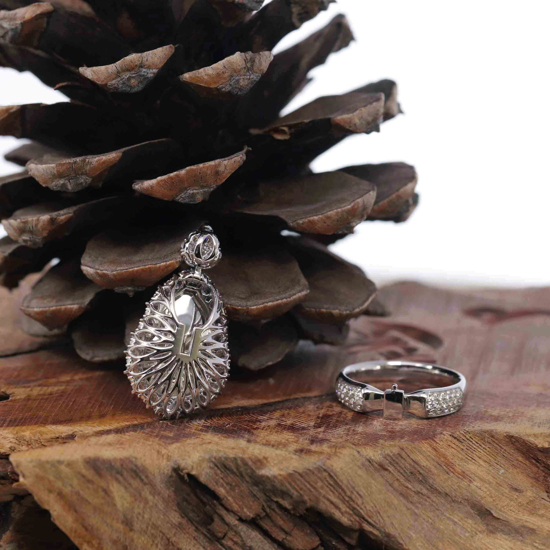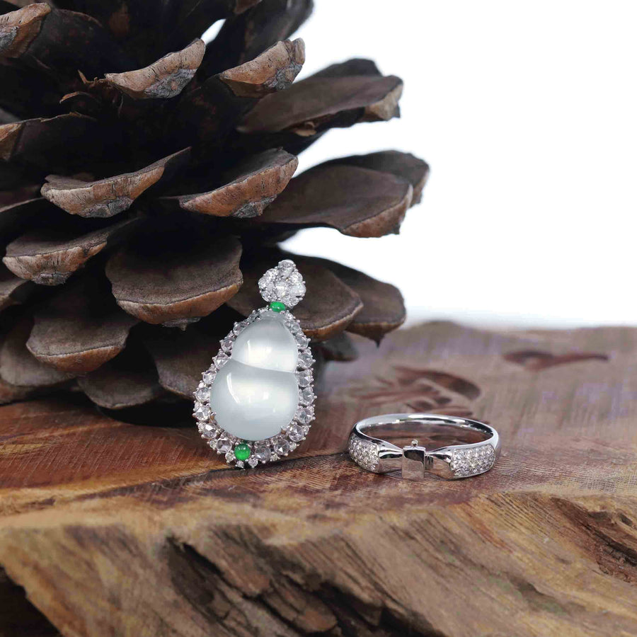 Baikalla Jewelry Jadeite Engagement Ring Baikalla "Hulu" 18k White Gold Natural Ice Jadeite Jade Pendant W/ Diamonds 2 in 1
