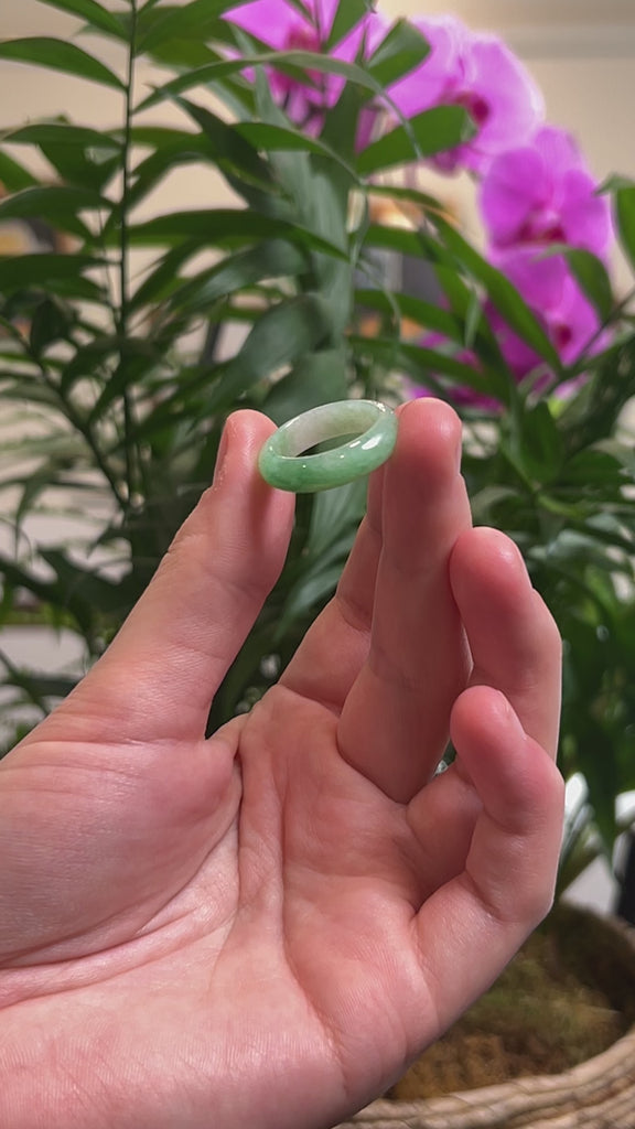 Baikalla Icy Apple-Green Burmese Jadeite Jade Traditional Ring #7.25