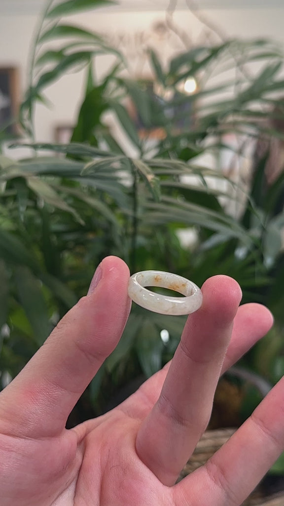 Baikalla Icy Light Green W/ Sajin Flower (Golden Dust) Burmese Jadeite Jade Traditional Ring #8