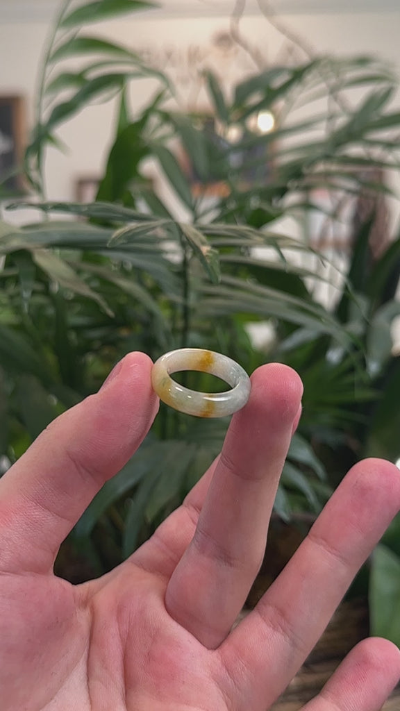 Baikalla Icy Light Green & Yellow W/ Sajin Flower (Golden Dust) Burmese Jadeite Jade Finger Bangle #6