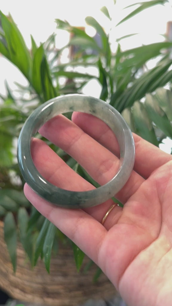 * DETAILS--- Genuine Burmese Jadeite Jade Oval Bangle Bracelet. This oval bangle features a semi-transparent texture, icy oil-green color throughout. Has some natural lines and cloudy texture. Its classic oval half-round design enhances its natural beauty and offers a comfortable fit for smaller wrists. Known for its durability, jadeite is also believed to bring good luck. This bangle makes a thoughtful and meaningful gift for yourself or someone special.