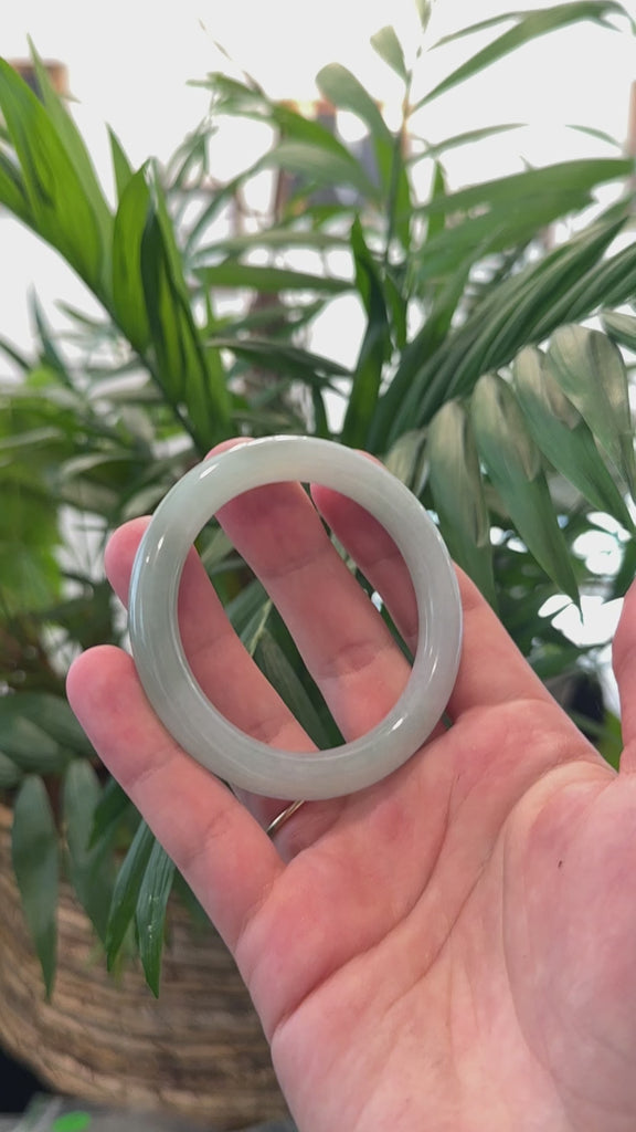 * DETAILS--- This bangle is crafted from genuine Burmese Jadeite jade, featuring a smooth, icy texture and an overall oil green color with a patch of more green color. The bangle has very no cloudy spots and no natural lines. It's a full round, traditional fit bangle, which gives the bangle a more dainty, petite look for everyday wear. Known for its durability, jadeite is also believed to bring good luck. This bangle makes a thoughtful and meaningful gift for yourself or someone special.