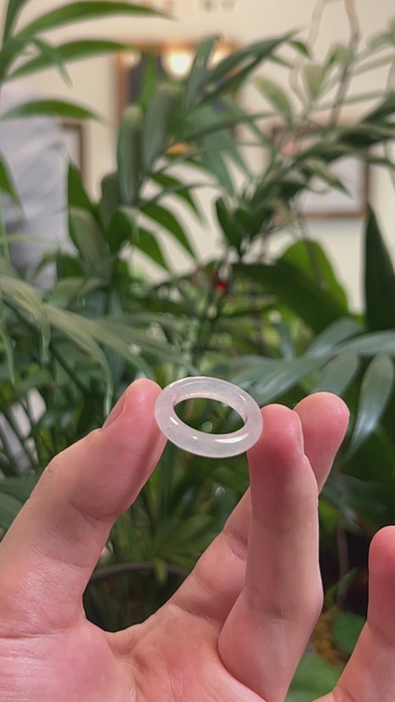 Baikalla Icy White Burmese Jadeite Jade Traditional Ring #5.5