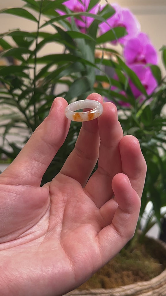 Baikalla Icy White-Green & Orange Sajin Burmese Jadeite Jade Traditional Ring #7
