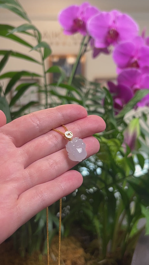 Baikalla Icy White "Piggy" Jadeite Jade Pendant W/ 18K Yellow Gold Bail