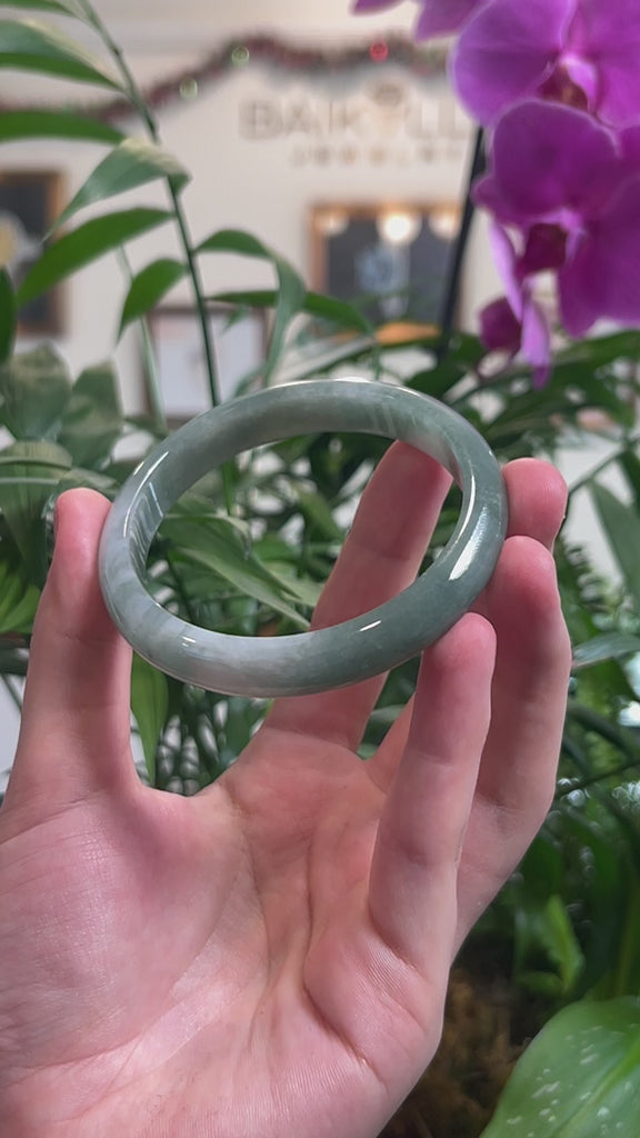 Designed in a half-round, comfort-fit style, the bangle is flat on the inside for a comfortable feel, perfect for everyday wear. Known for its durability, jadeite is also cherished as a symbol of good luck, protection, and harmony. Whether as a gift for yourself or a loved one, this jade bangle is a meaningful treasure that combines natural beauty, lasting craftsmanship, and exceptional value to cherish for years to come.
