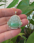 Baikalla "Laughing Buddha" 14k Gold Genuine Green Jadeite Jade with VS1 Diamonds