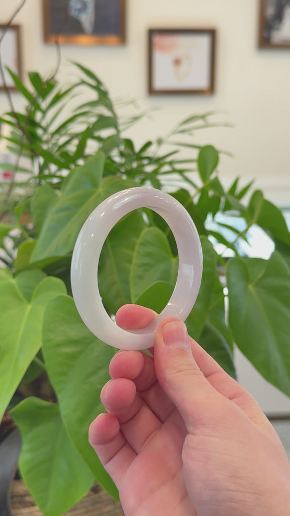* DETAILS--- This beautiful luxury bangle is made from premium Burmese Jadeite jade, featuring a smooth ice texture and a lovely light lavender color. Its classic half-round design highlights its natural beauty and ensures a comfortable fit. A timeless piece, perfect as a thoughtful gift for yourself or someone truly special.