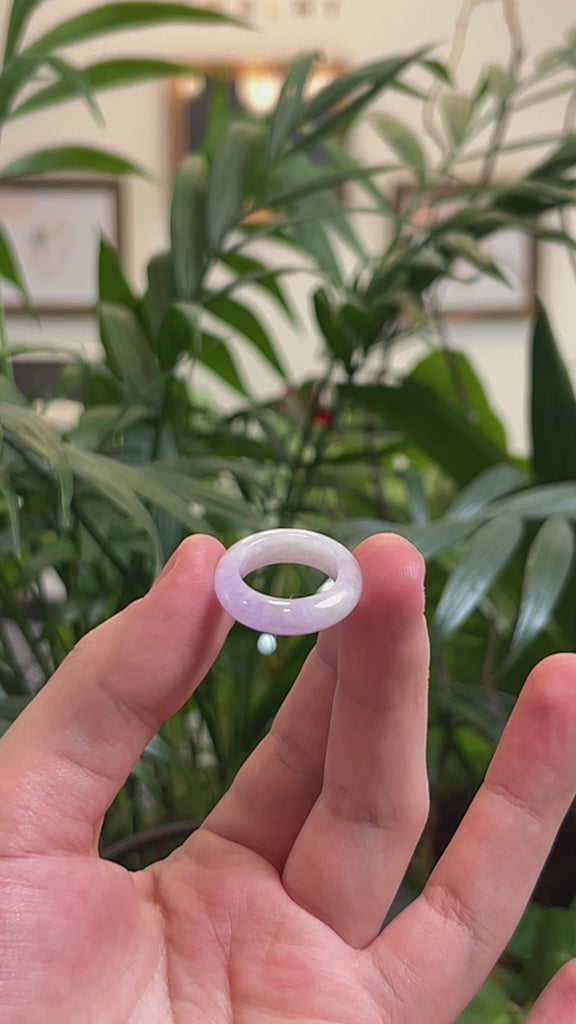 Baikalla Lavender & White Burmese Jadeite Jade Traditional Ring #4.5