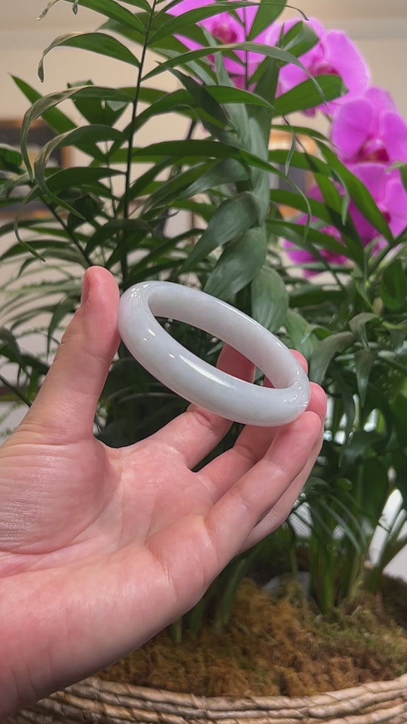 * DETAILS--- This bangle is crafted from genuine Burmese Jadeite jade that features a light blue-green color throughout. The texture is smooth with few natural lines and minimal cloudy spots. Designed in a half-round, comfort-fit style, the bangle is flat on the inside for a comfortable feel, perfect for everyday wear. Known for its durability, jadeite is also cherished as a symbol of good luck, protection, and harmony. Whether as a gift for yourself or a loved one, this jade bangle is a meaningful treasure that combines natural beauty, lasting craftsmanship, and exceptional value to cherish for years to come.